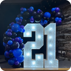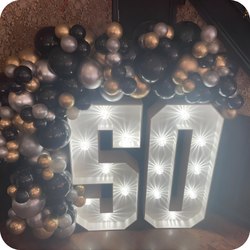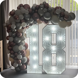Number Marquees (Balloon Stacks) - Classic Balloon Decorations - Organic Balloon Garlands - Balloon Arches (indoor & outdoor) - Event Props - Light Up Numbers - Custom Backdrops - Personalised Welcome Signs.