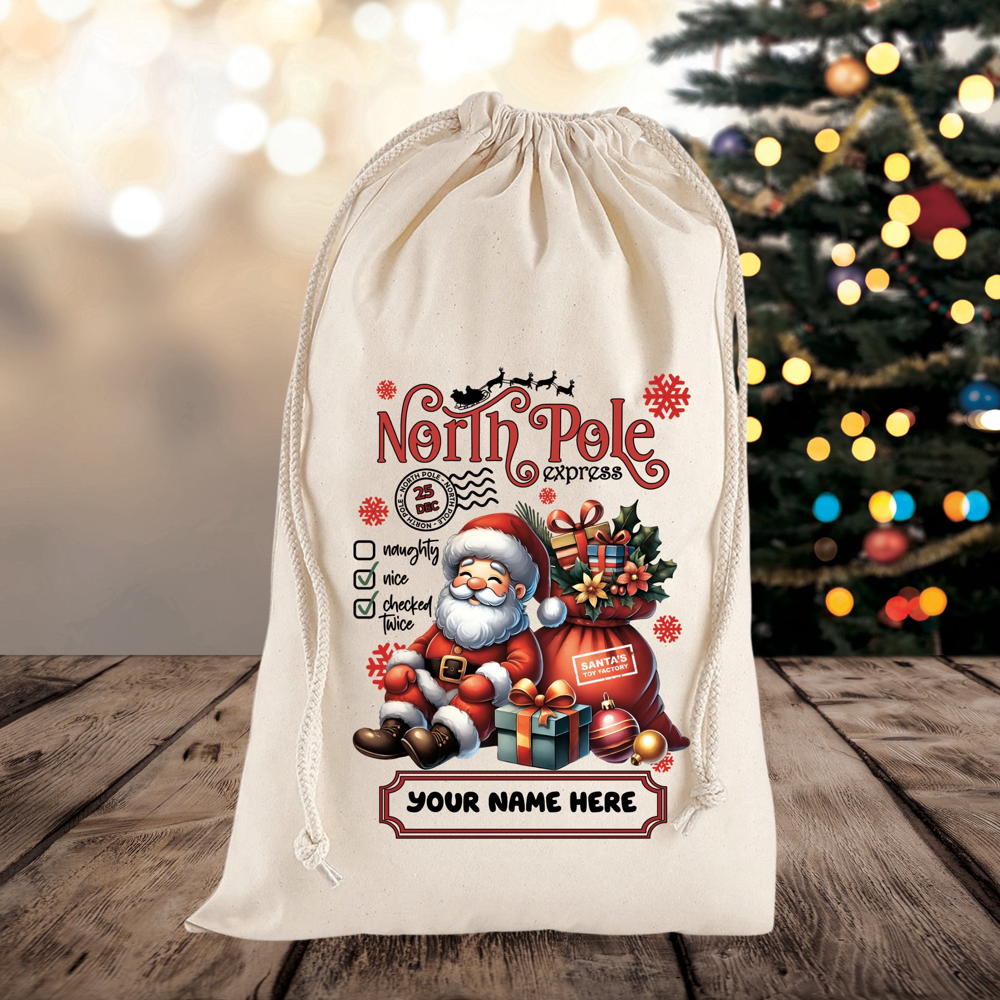 Our Personalised Premium Cotton Santa Themed Christmas Sack is the perfect way to surprise your little one this festive season. Beautifully designed with a classic Santa theme, each sack can be customised with any name, making it a keepsake they’ll treasure year after year.